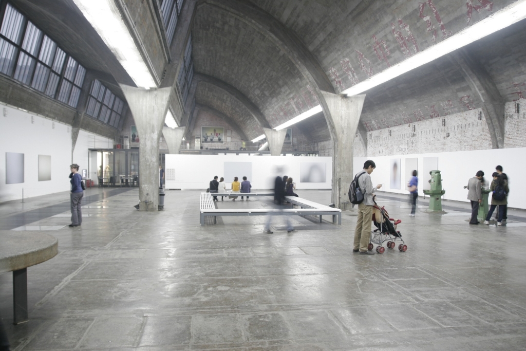 Old electronics factory turned into art gallery - anything would look cool in this room...
