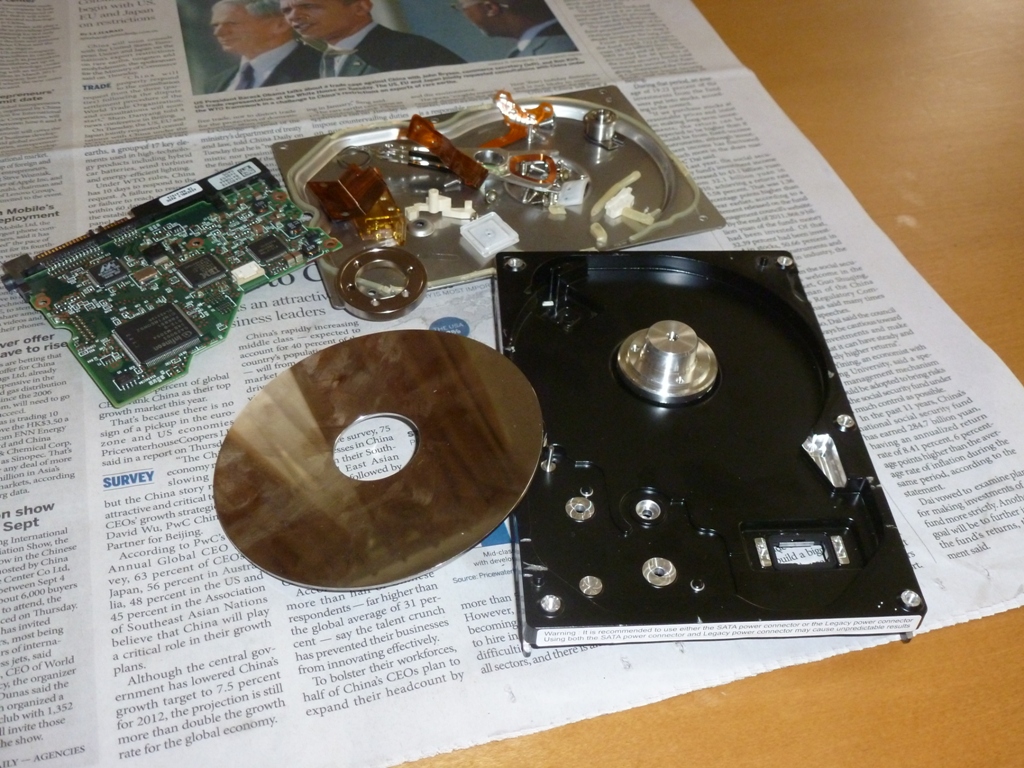 G and I disassembled an broken old hard-drive to see if there were gerbils inside. No gerbils, but killer magnets... |