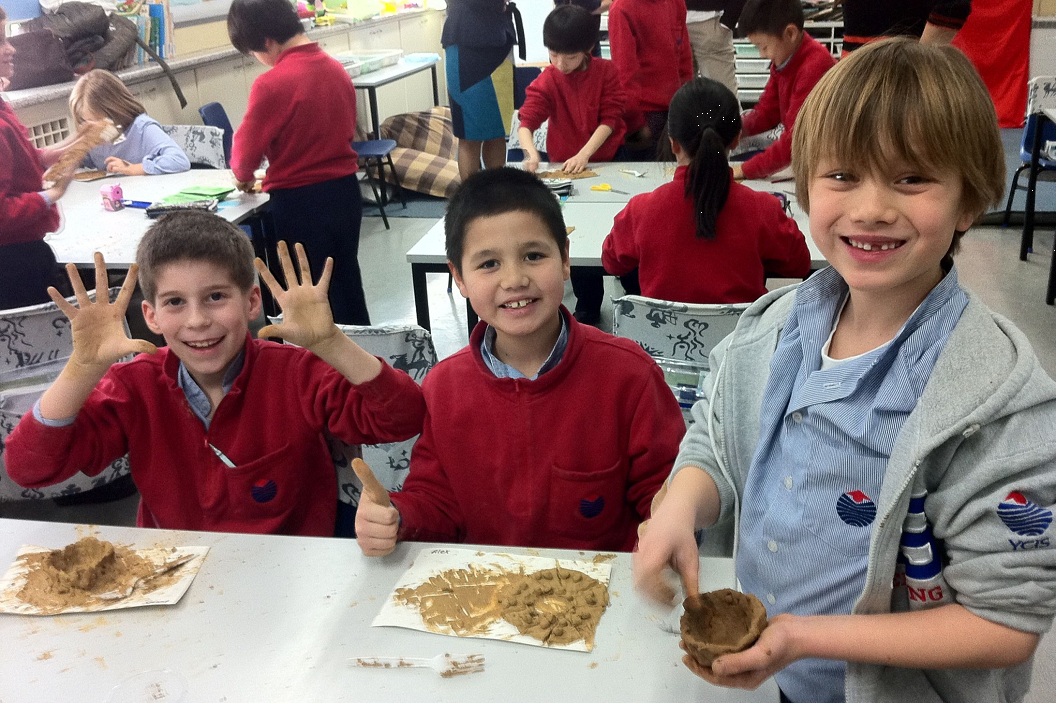 G and classmates building museum "artifacts"... |