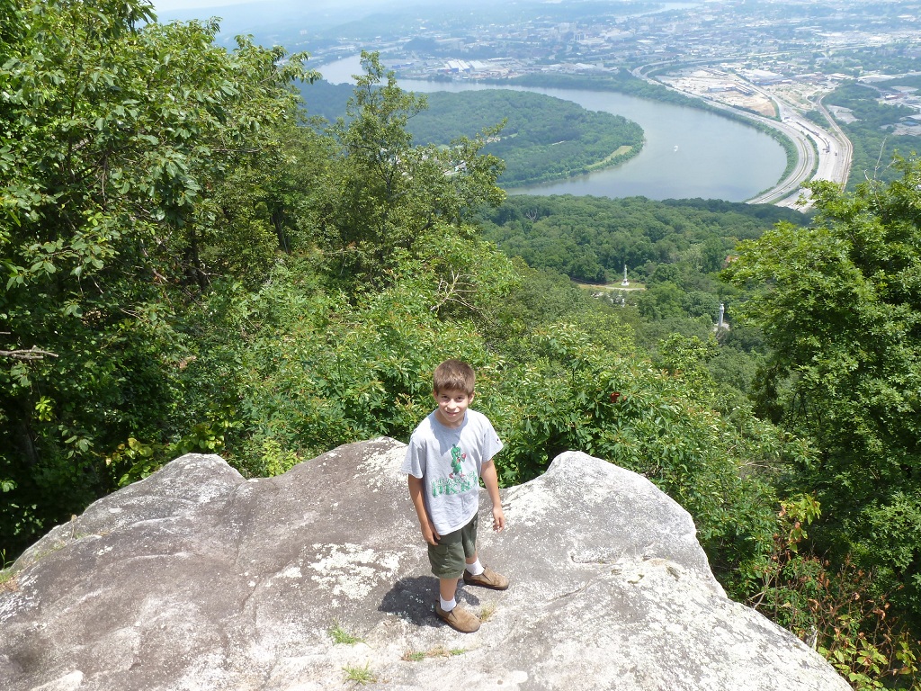 We needed Subaru parts from a junkyard in Chattanooga, so we decided to make a family trip out of it (here's G at Lookout Mountain)...