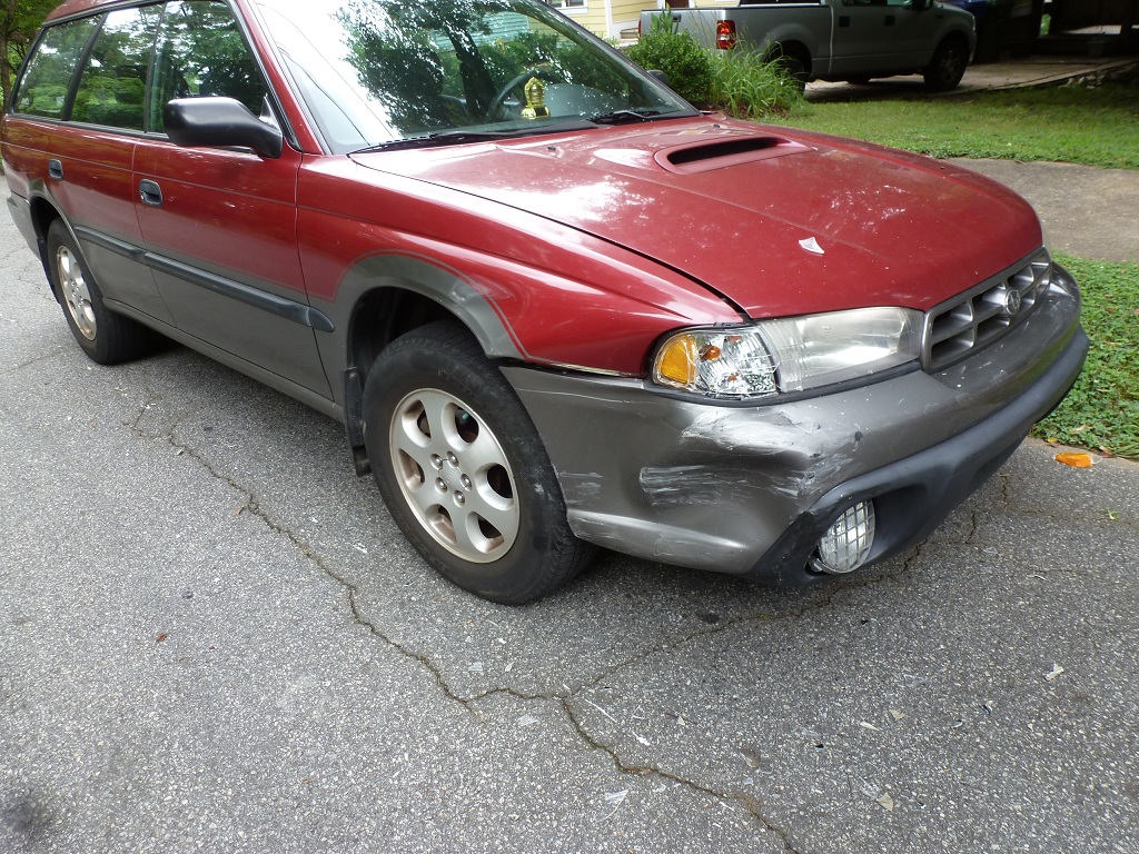 The lowlifes who tried to steal some lawn equipment smashed into our car during their bumbling getaway...