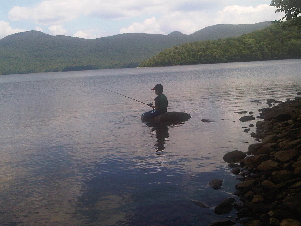 G fishing in Chittendon Reservoir, vermont. Fishing, besides its other benefits, provides 9 year-old boys with an acceptable excuse to get up early and stay out late...