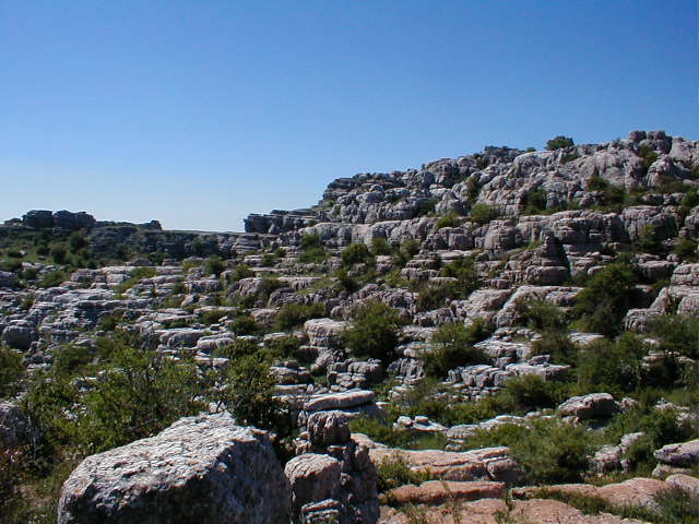 | Back to El Torcal, this time for good walk. The terrain is a bit like the badlands in South Dakota, except with wildflowers. |