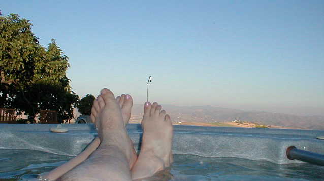 | The jacuzzi has a pretty good view over the countryside also. |